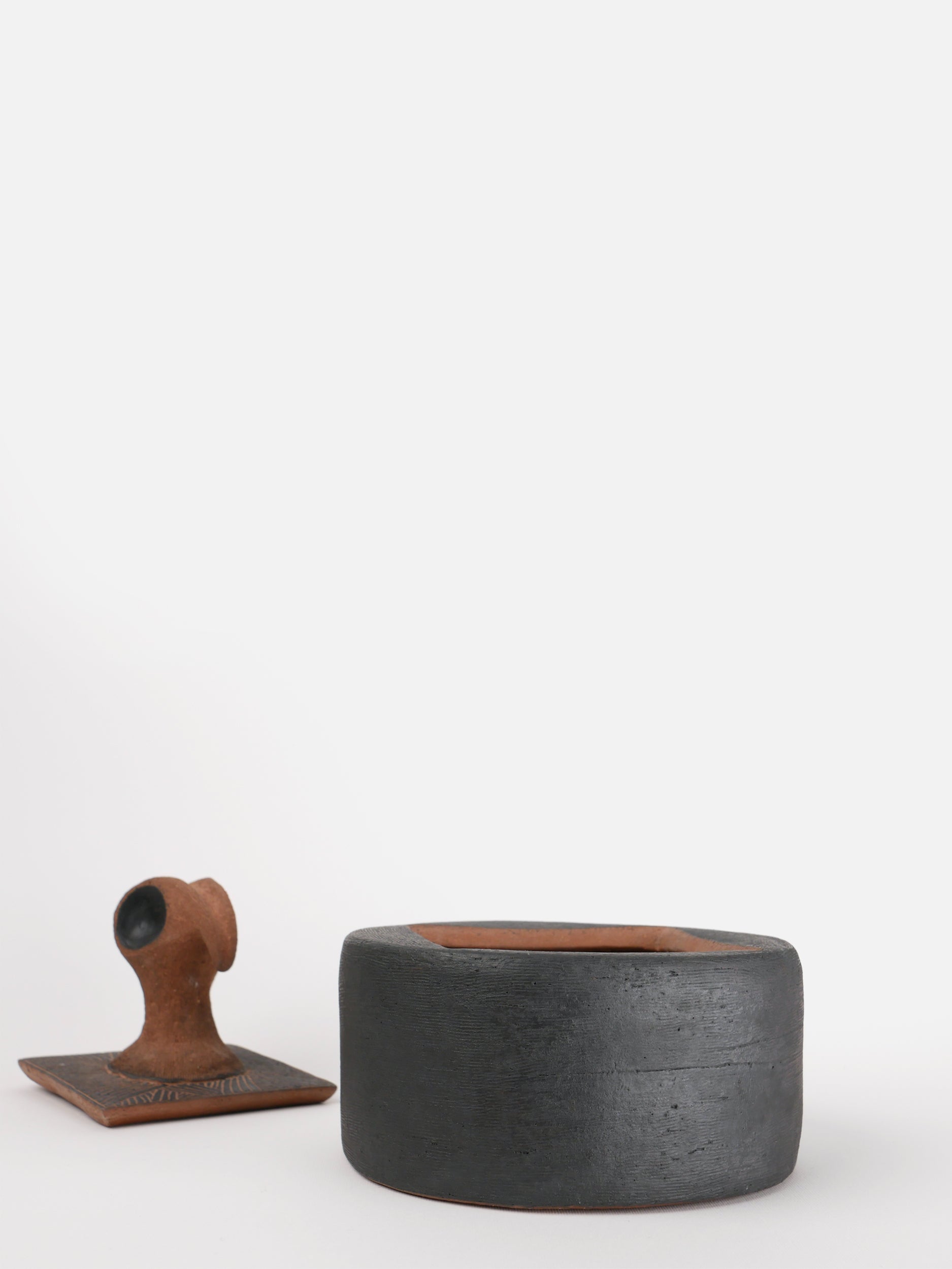 Ceramic box · Fayoum · Sienna and black