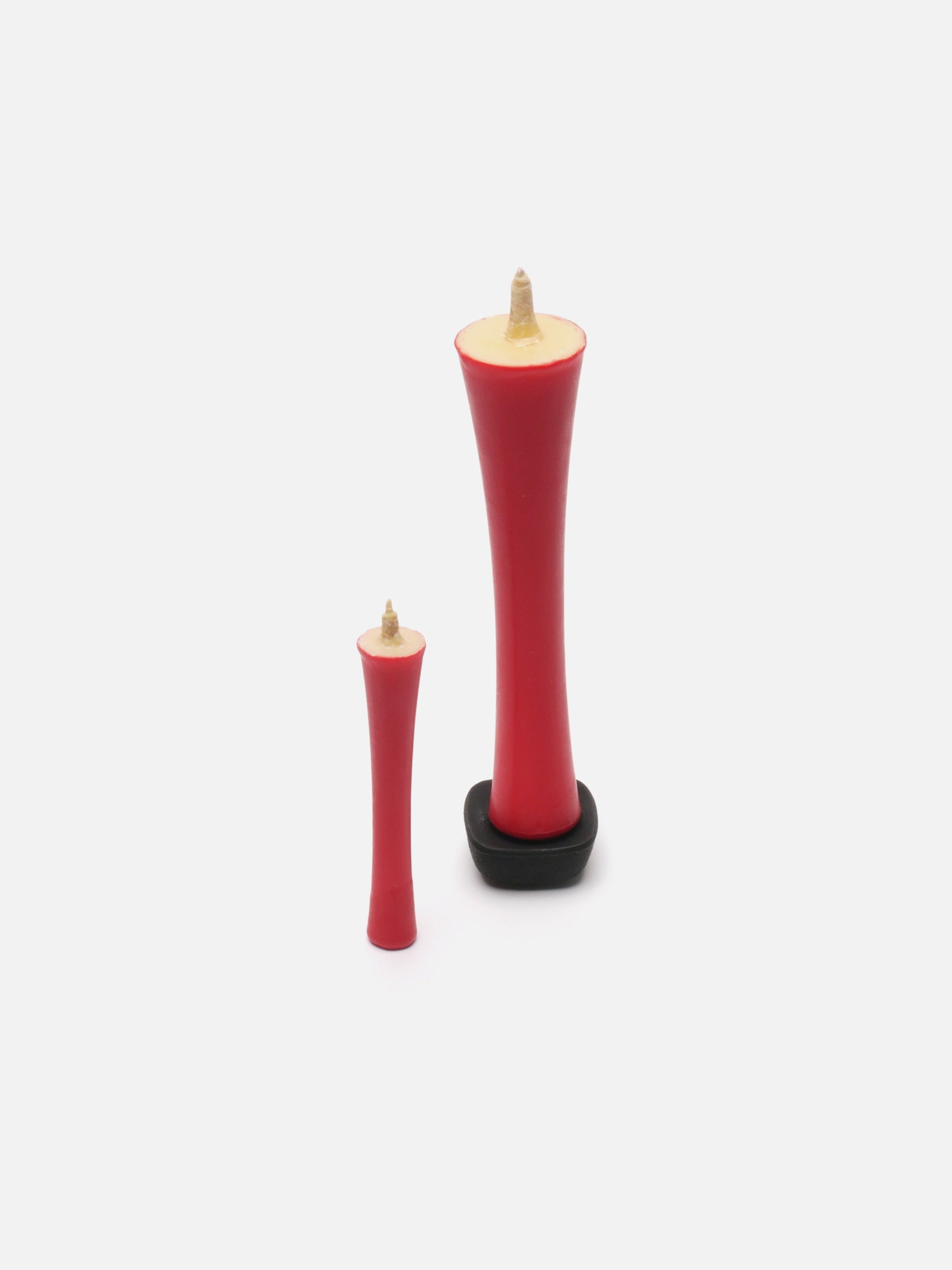 Small hand-dipped ceremonial candle made from natural plant wax and coloured with natural vermillion pigments, featuring the distinctive tapered form and thick paper wick characteristic of authentic Japanese warosoku. The vibrant red hue symbolises peace, prosperity and celebration in Japanese tradition, making this candle particularly meaningful for auspicious occasions. The elegant silhouette and pure flame create a perfect balance of light and shadow, ideal for ceremonies, meditation or special celebrations.
